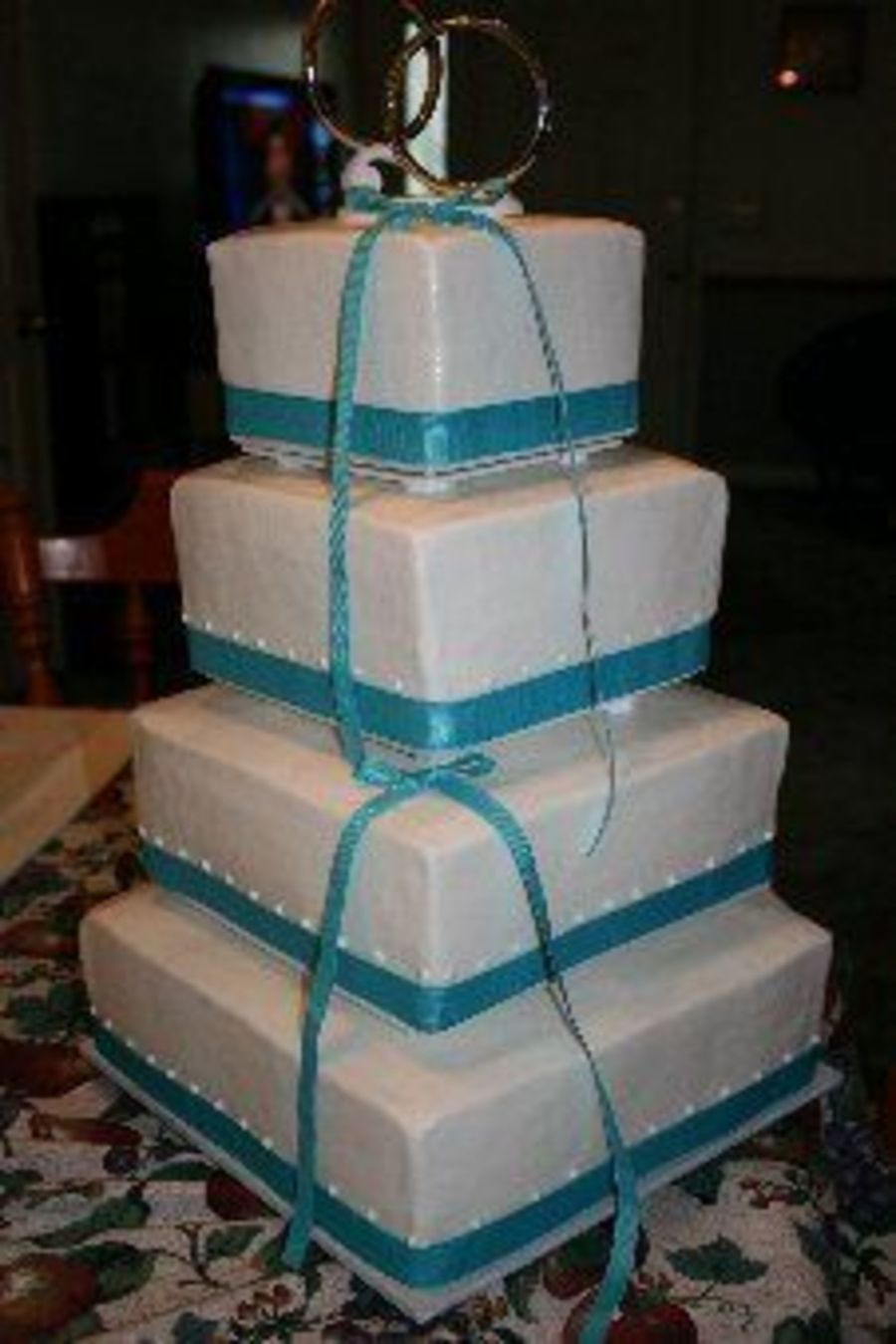 This cake was made as a wedding gift, and was my first Square wedding cake. Didn't turn out as smooth as I'd like it, but hey, you gotta practice right? Cake is buttercream with a variety of flavored cake.