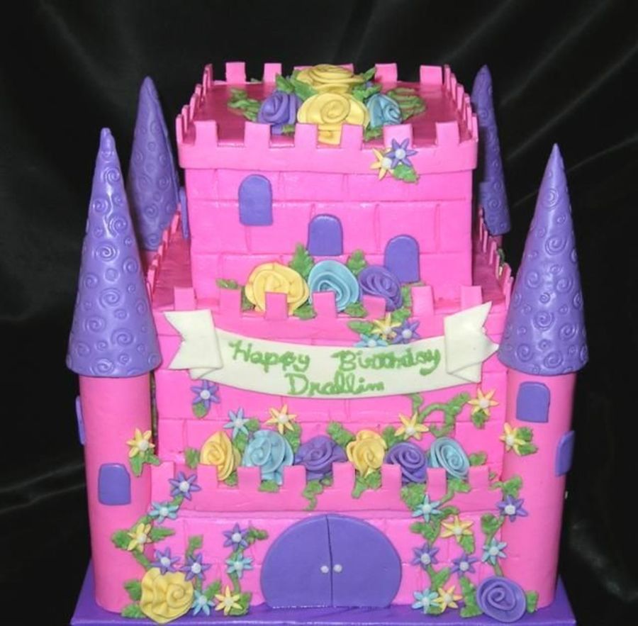 10 in 8 in and 6in cakes. Buttercream icing and MMF decorations. Thanks to all the great castle cakes here on CC! TFL