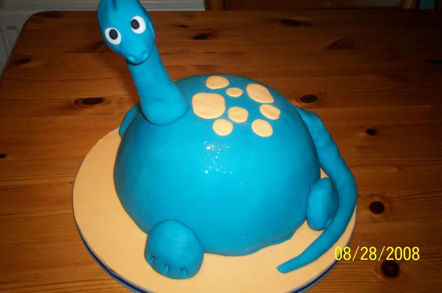 My first dinosaur. I love making cakes using the bowls as the shape onced iced looks great.