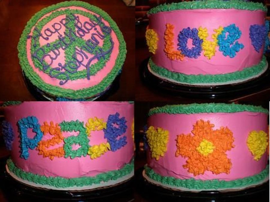 This is a peace sign cake I did for a coworker with designs around the sides as well.
