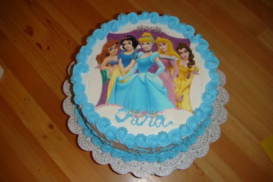 Whip Cream frosting with Princess edible images. This was my first time using the edible images. What a time saver.