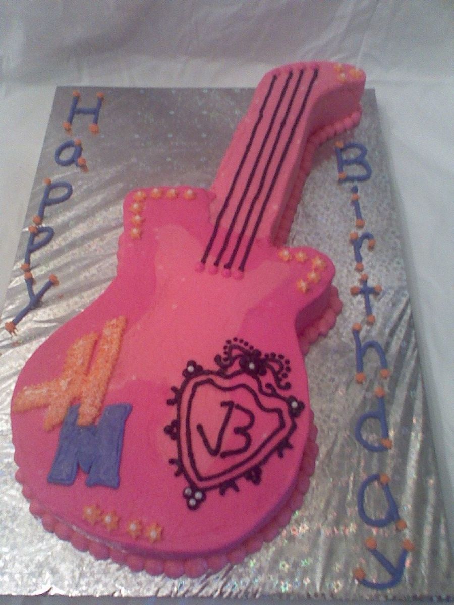 This was done for a little girl turning 10 that loves Hannah Montana and the Jonas Brothers. Her Grandmother ordered the cake and said it was a surprise to the little girl. Hand carved and all bc icing & all piping is done by hand with bc also. This was a fun cake to do!