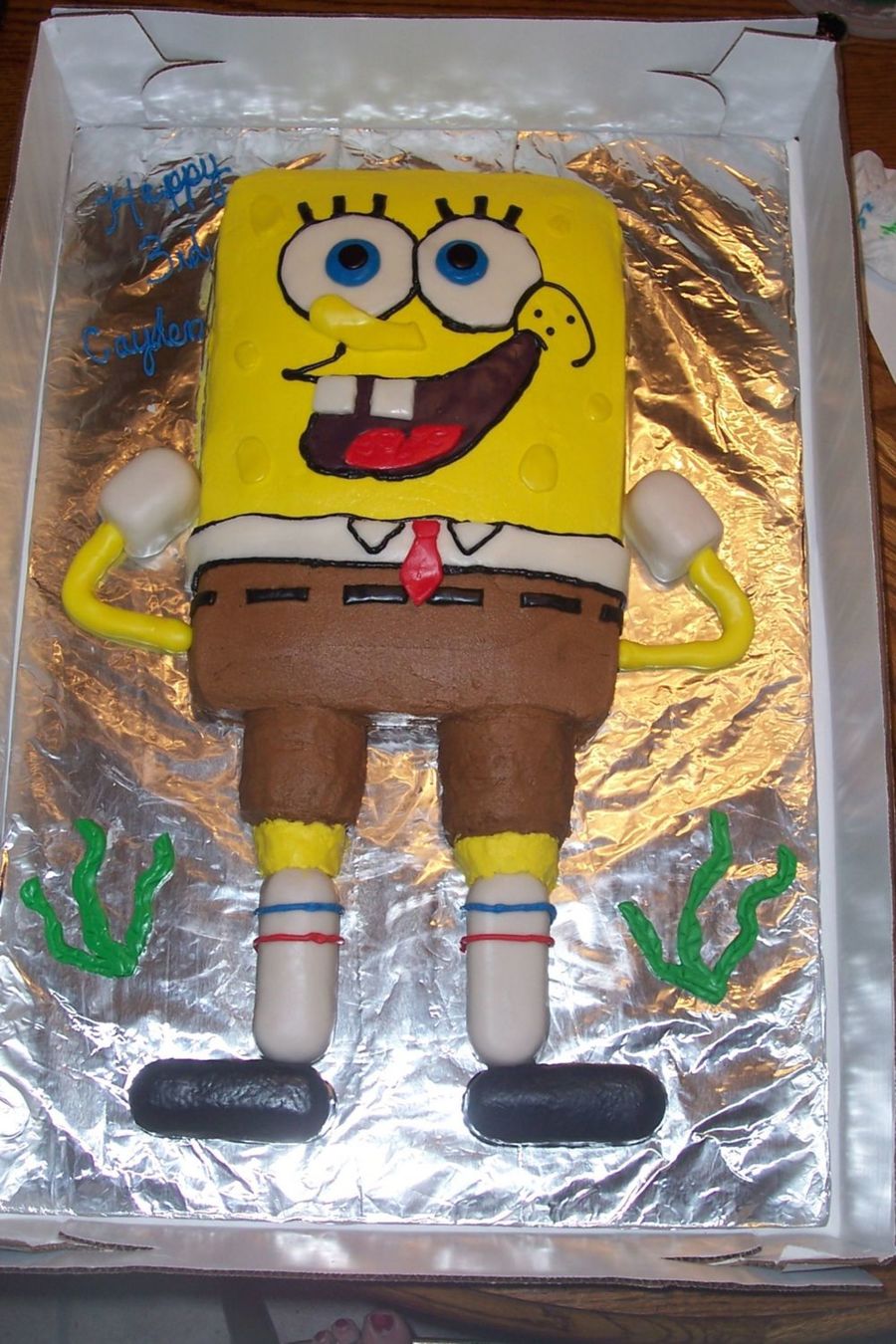 Thanks to the inspiration from brekka's and sampy's cakes... I made this for my nephew. This was my first time working with fondant. The cake is iced in buttercream and the accents are fondant. I used ding-dongs and twinkies for the legs.