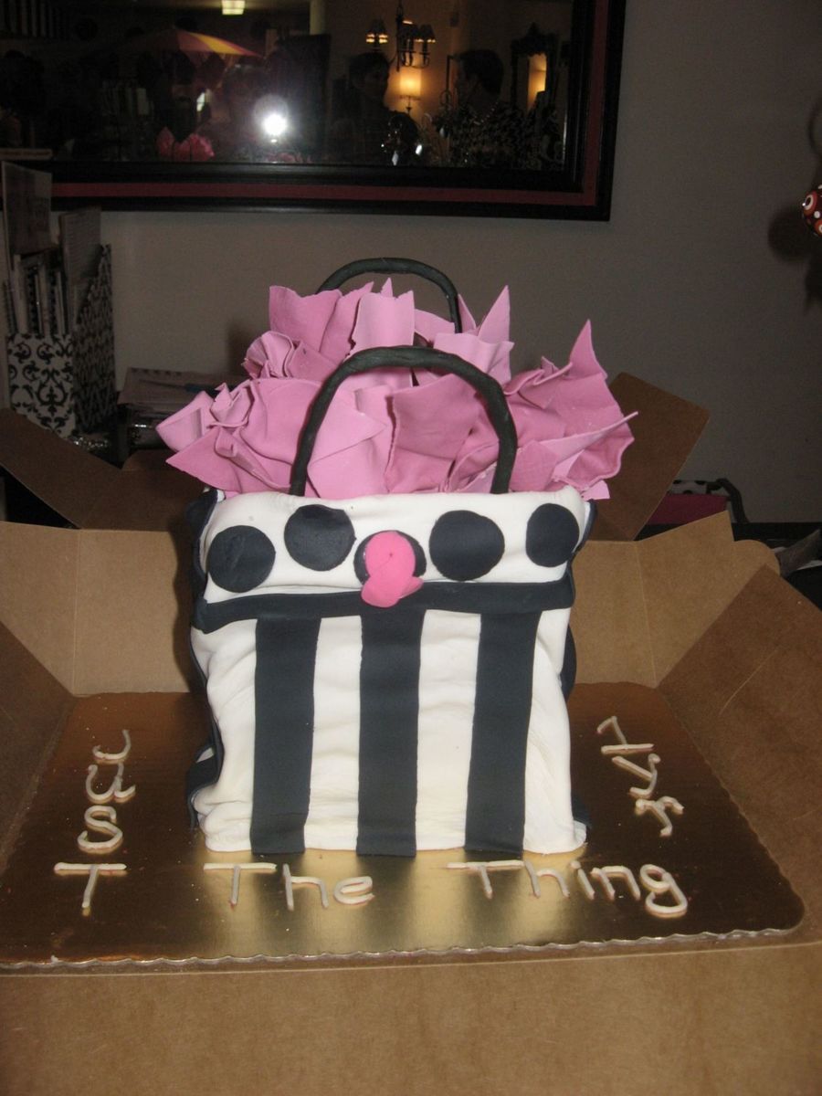 Chocolate cake covered with fondant. Tissue is gumpaste. Gave to a l lady celebrating her shops one year anniversary and a breast cancer survivor.