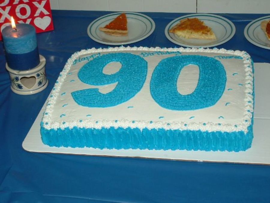 Made for my great uncle's 90th birthday. Half yellow, half chocolate with buttercream icing.
