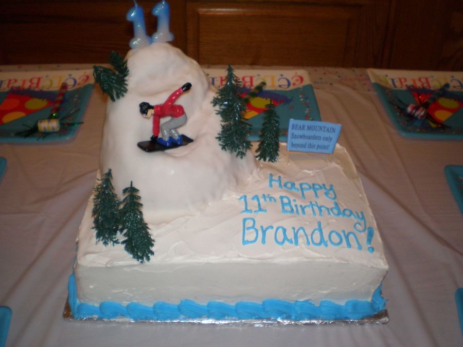 I made this cake for my son's 11th birthday. It was super easy. The mountain is made of rice crispy treats with a fondant overlay.