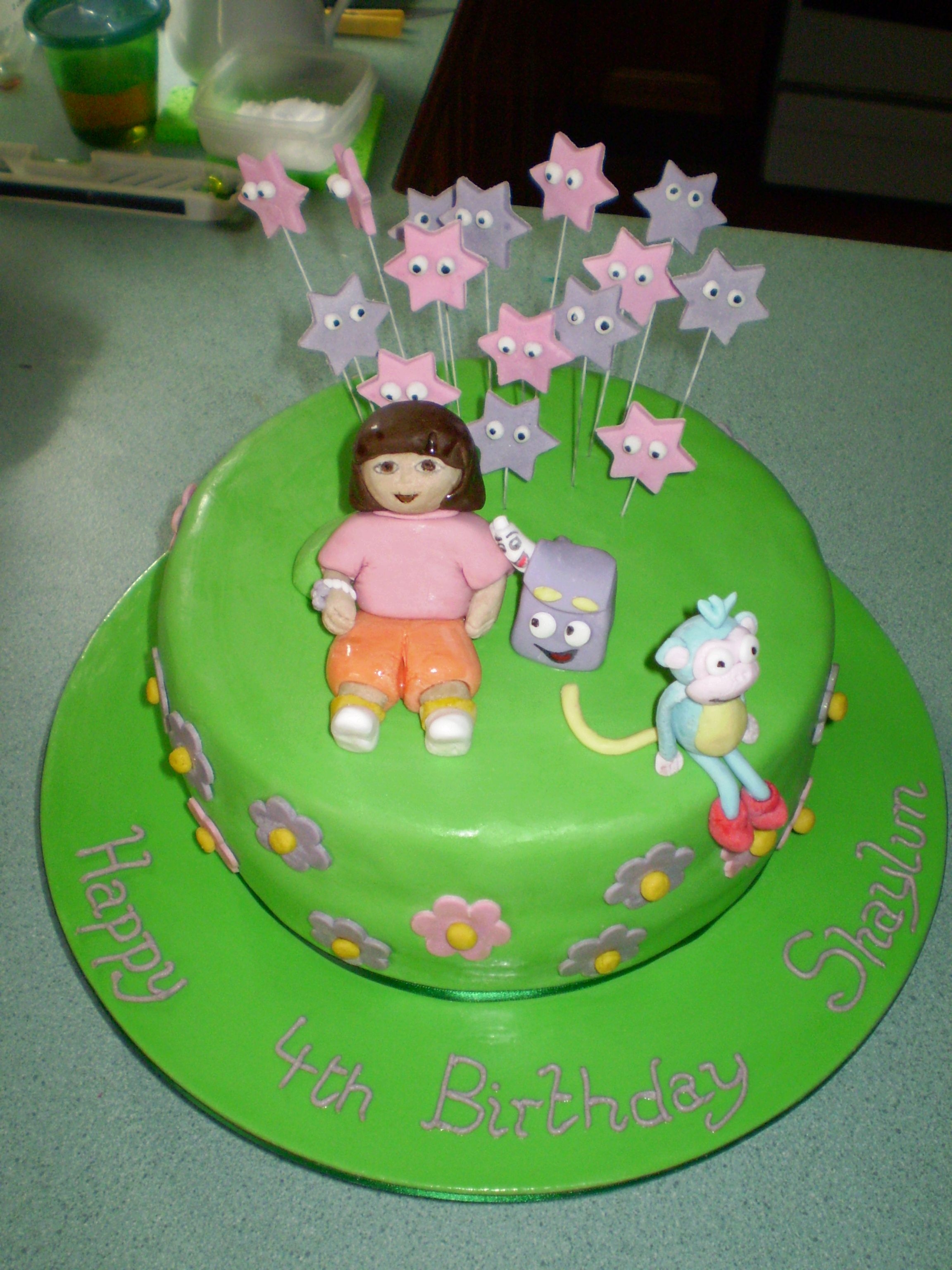 inspiration taken from many cakes on this site. thankyou to all of you!! first attempt at modelling characters. Dora could've been better...more practice!