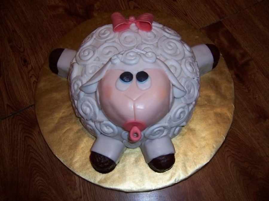 Inspired by Galadriel's figure. I made a 3D cake of a lamb, body and head are cake, covered in rolled buttercream with icing swirl wool. twinkie feet.