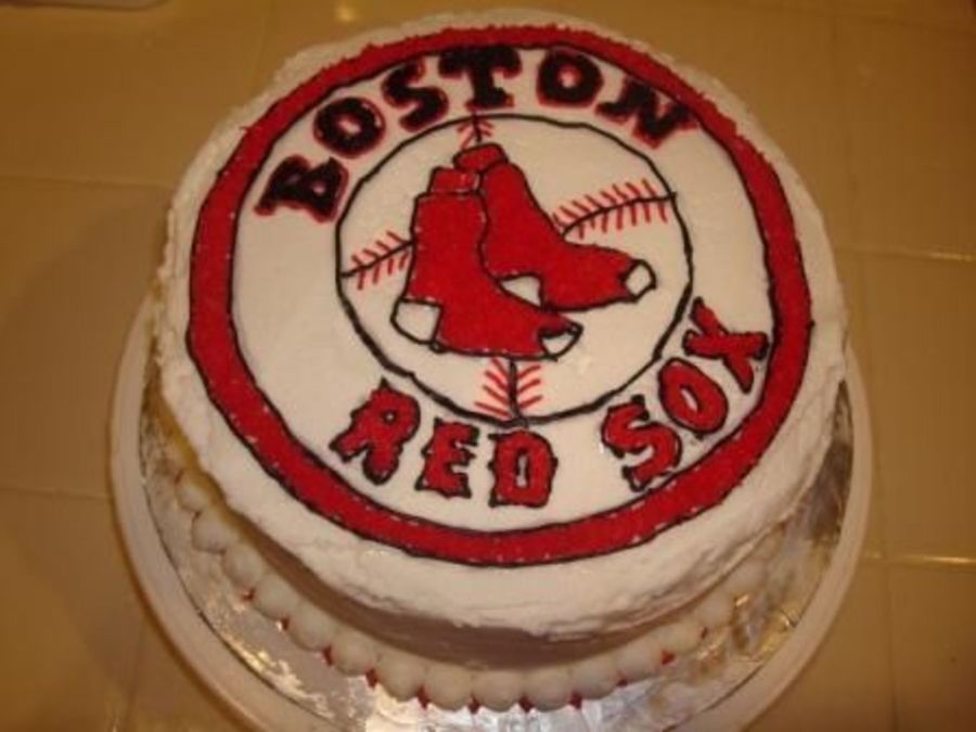 8" round cake in buttercream with Boston Red Sox logo