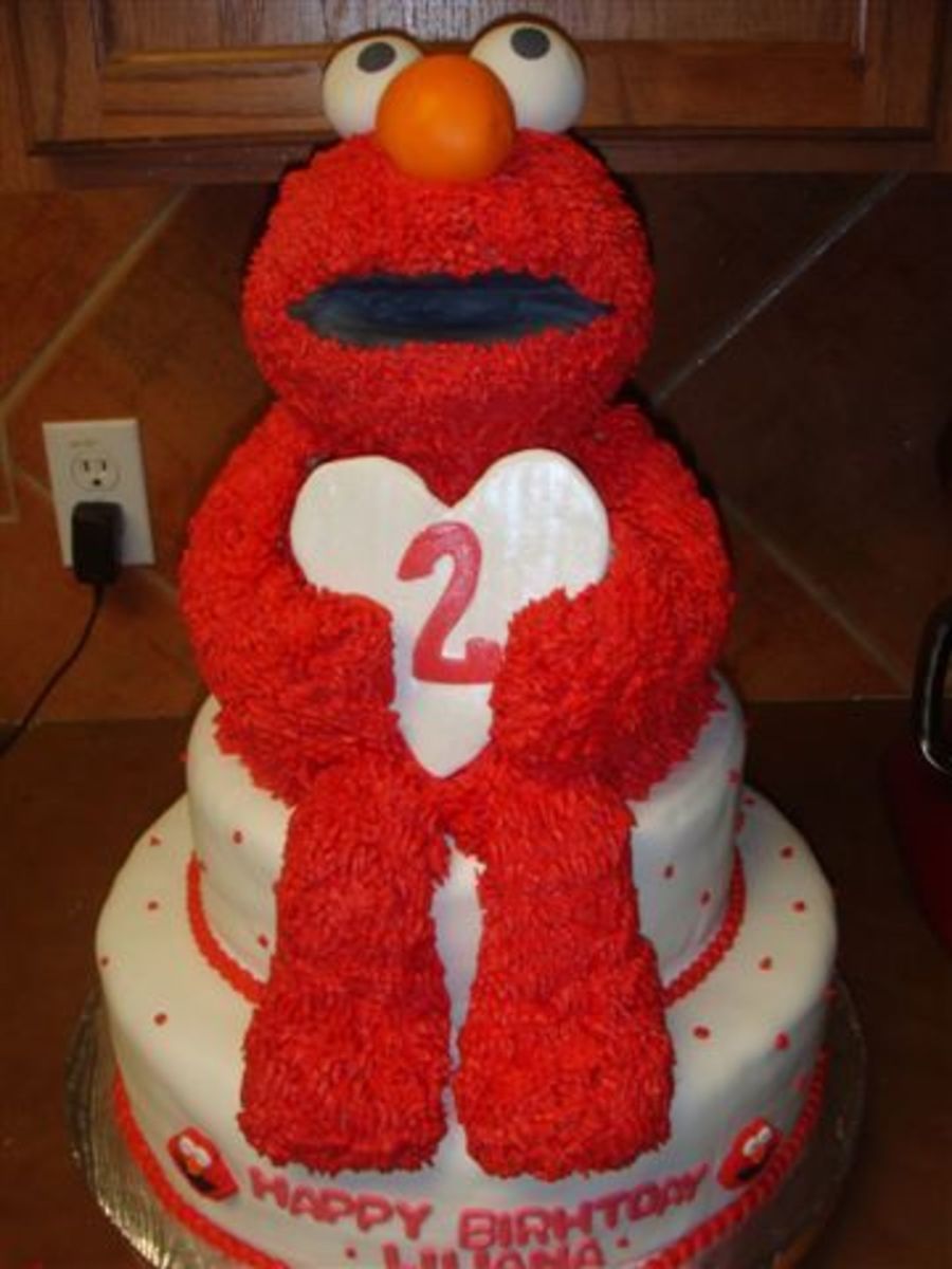 3d elmo sitting on 2 tier cake, 10 & 14"