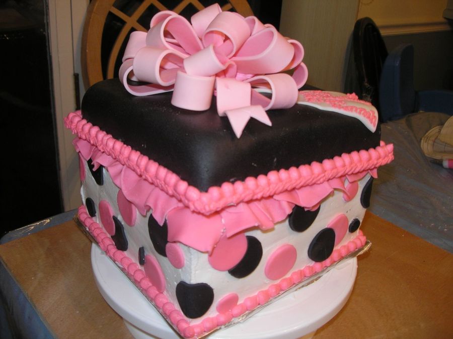 chocolate cake covered in buttercream icing with fondant decorations.