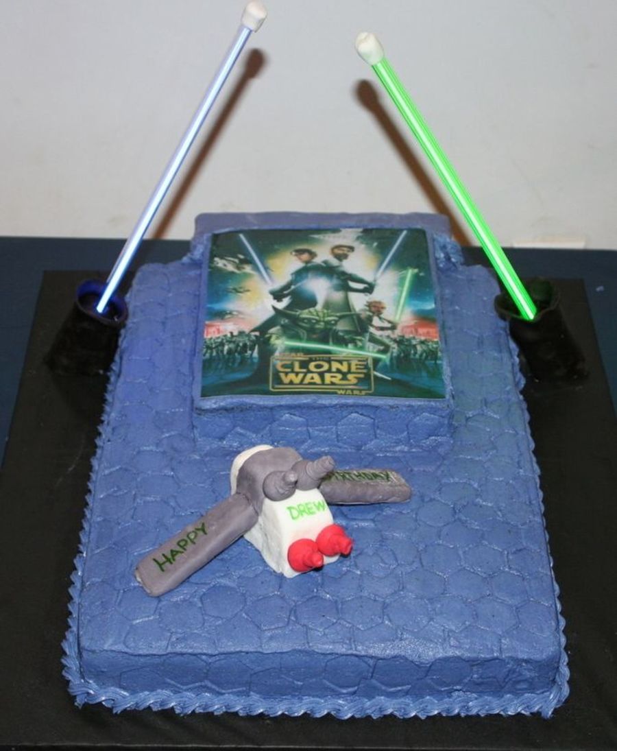 Clone Wars Edible Image With Working Lightsavers on Cake Central