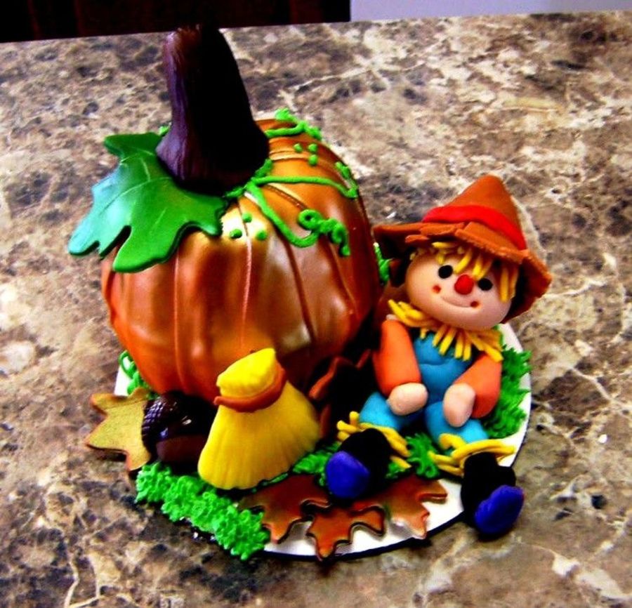 The Pumpkin is WASC cake, Acorn is chocolate everything else is Gum Paste and fondant