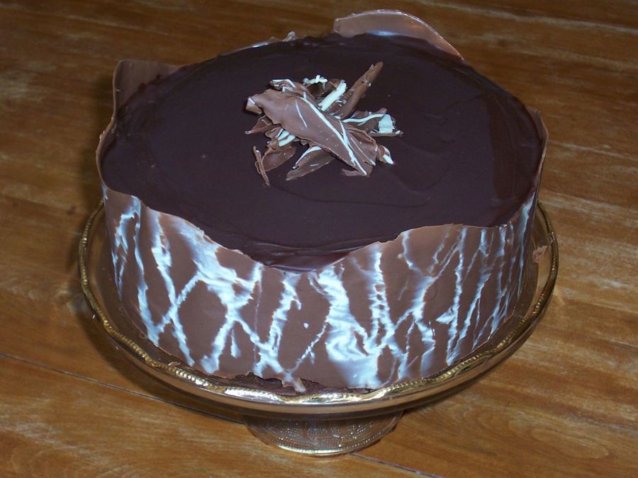This was my first time doing a cake with a chocolate wrap and chocolate shards on the top. It didn't turn out quite as well as I was hoping, but I learned a lot and my husband loved it!