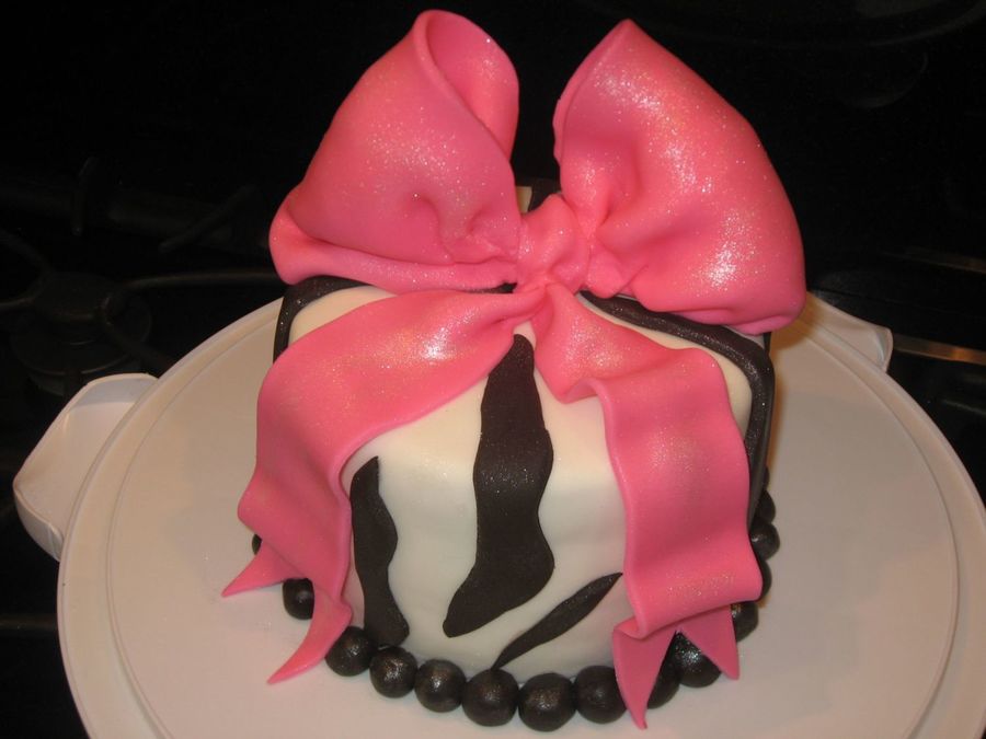 This was my first fondant cake and my first bow... The black stripes are chocolate fondant.