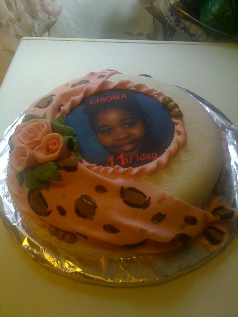 This cke is for my daughters 11yrs birthday at school. The cake is a marble cake of vanilla and chocolate covered with rolled fondant edible foto and roses