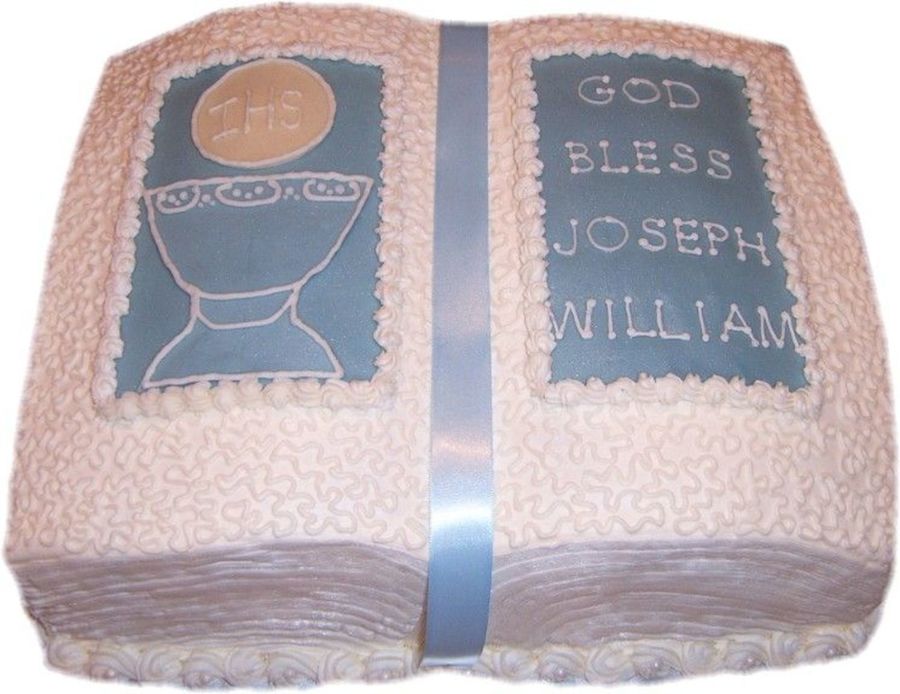 Book pan on top of 11x15 sheet cake- cornelli lace- blue and ivory candy clay