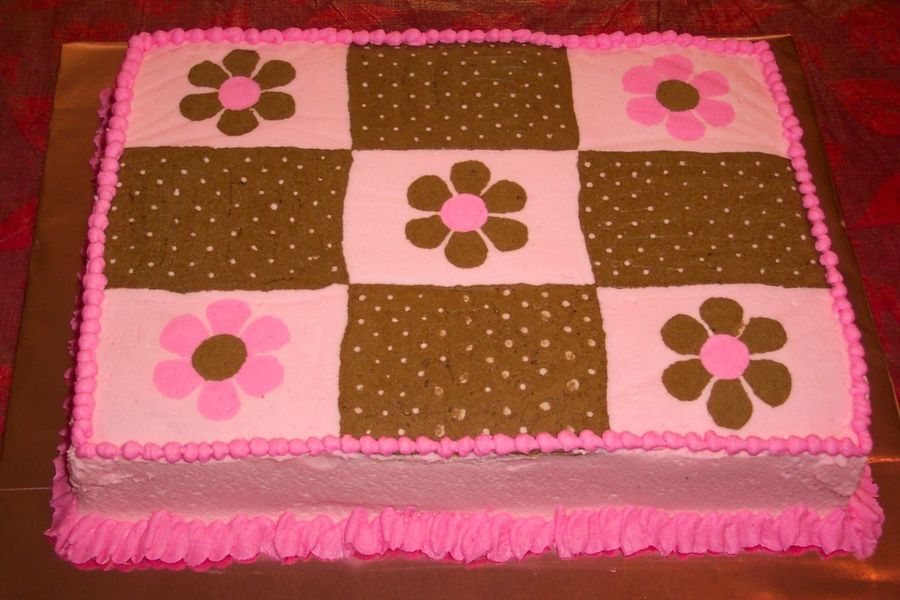 Chocolate cake with buttercream icing. It was decorated by request to look like the baby's bedding.