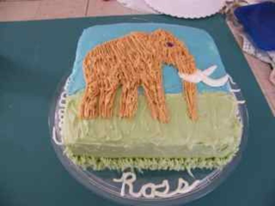 My recently bought a huge mammoth bone, this his birthday theme cake. All in buttercream.