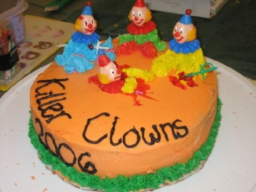 I was taking the Wilton Class 1 during the Halloween season when suddenly I needed to bring a cake for a Halloween party the night as my class. The lesson was making clowns.. I think I scared my teacher after this one.
