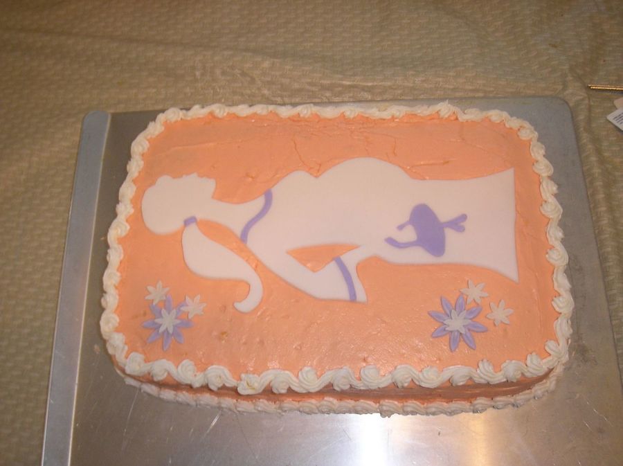 this was made for Mother's Day to announce that we were pregnant. The lemon curd buttercream was very difficult to smooth! The silhouette and flowers are fondant.