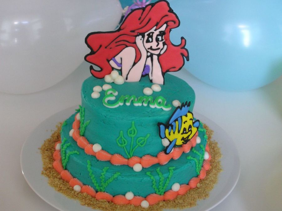 I made this cake for my daughter's third birthday party "Under the Sea". Ariel and Flounder are color flow, with graham cracker "sand".
