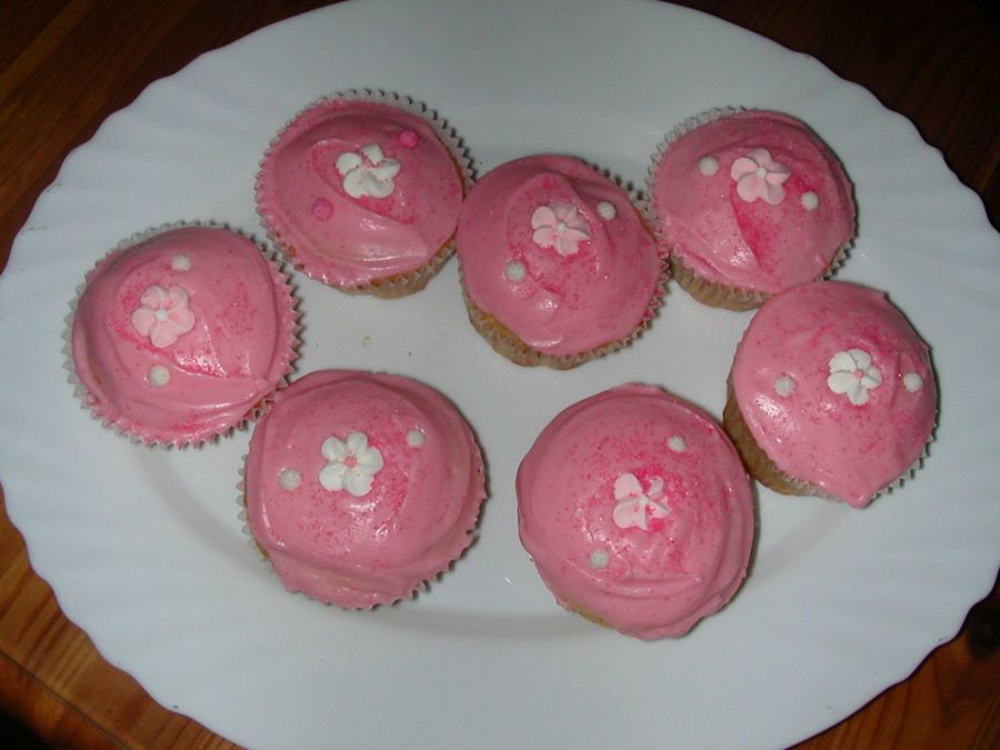 I made these for my daughter's b'day. I've got lots to learn about decorating cupcakes but I think these came out pretty. They are vanilla cupcakes with cream cheese frosting.