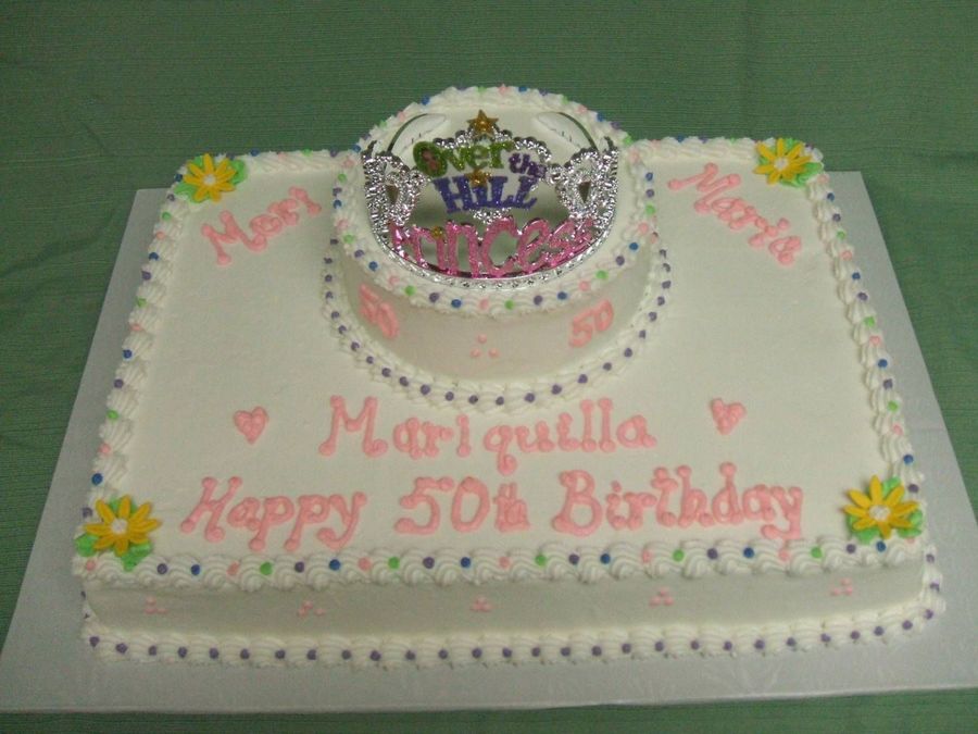 Buttercream frosting with a few fondant flowers and a plastic crown
