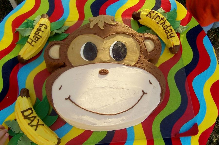 This was for my youngest son's 1st birthday. Banana cake (of course!) with chocolate ganache filling, buttercream icing. The banana's were made with cake truffle "dough" and iced with buttercream icing. Thanks for looking!
