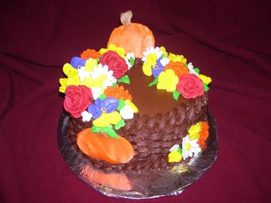 White cake with raspberry filling and chocolate icing. Wanted it to look fall-like since it's October. TFL!