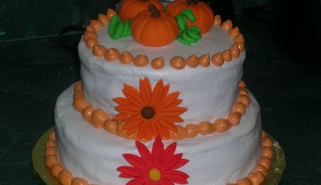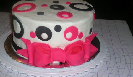 Practice cake for 3rd Wilton Class. Didn't roll enough for the border so filled it in with some GP daisies. TFL