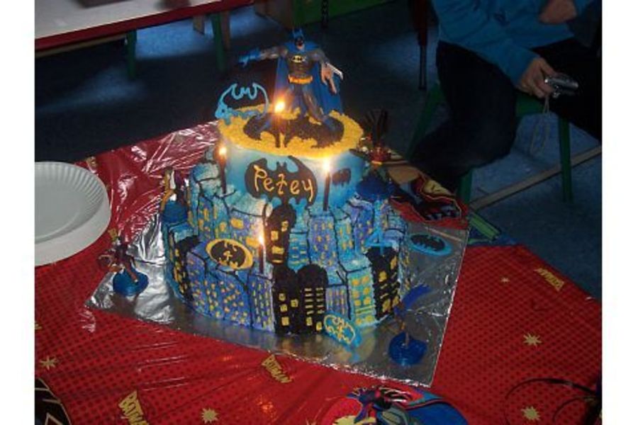 For my son's 4th birthday, he really wanted a batman themed cake and this is what I came up with, he really loved the fact that he got to keep all the toys on the cake.