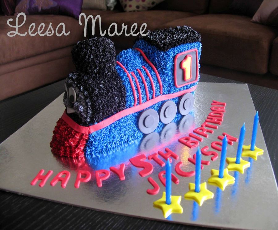 Made using the Wilton Choo Choo Tin, buttercream with fondant accents.