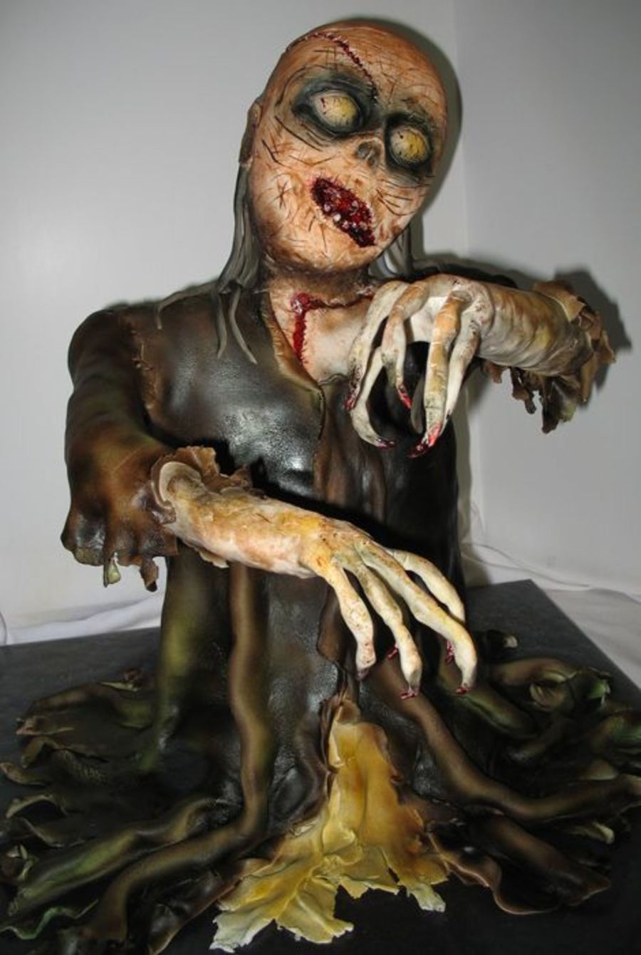 This cake has an internal pvc support. The body is about 7 layers of cake, and the head is rice krispie treats.