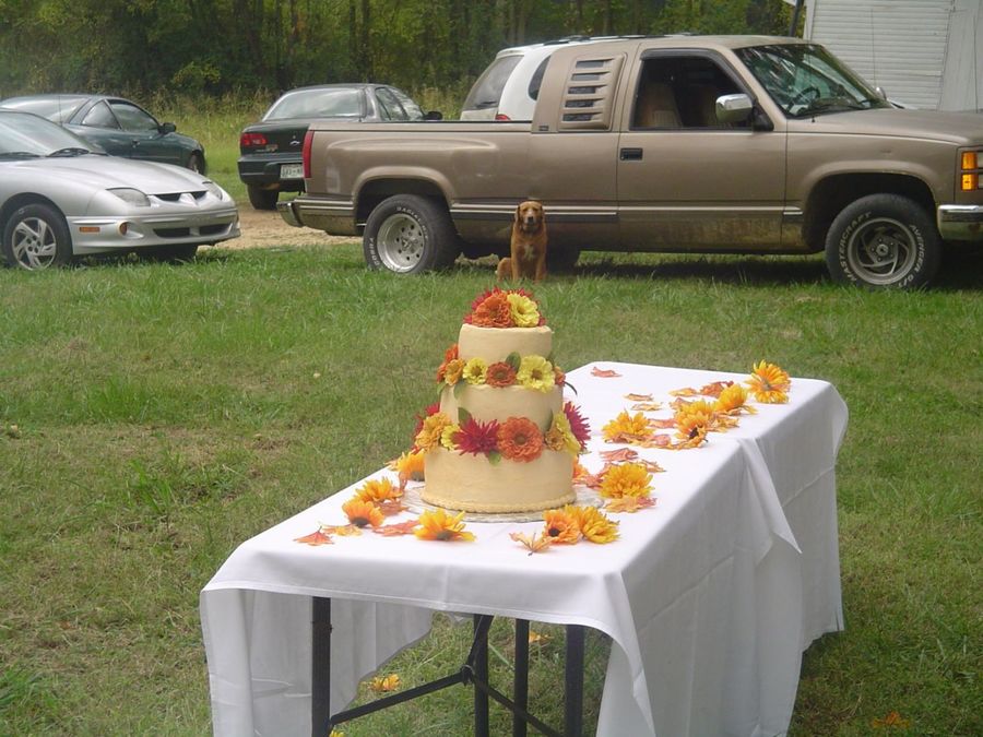 This is my first Wedding cake.. I think it turned out good.. The bride and groom loved it and with the season it fit just right.. Thanks for looking.