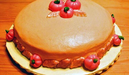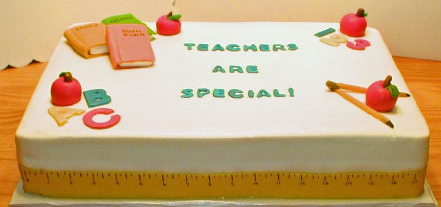 White cake with strawberry cc filling. All accents fondant. For the dinner that the PTA provides for the teachers during parent/teacher conference.