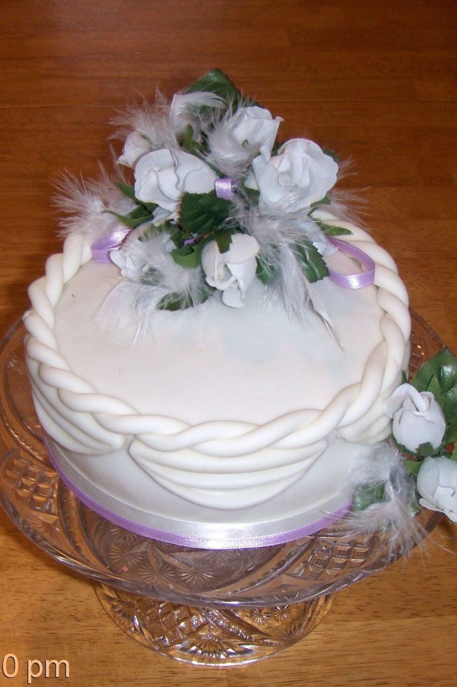 Wanted to practice fondant (yet again) and love to incorporate feathers into my cakes. Enhanced yellow cake w/raspberry filling