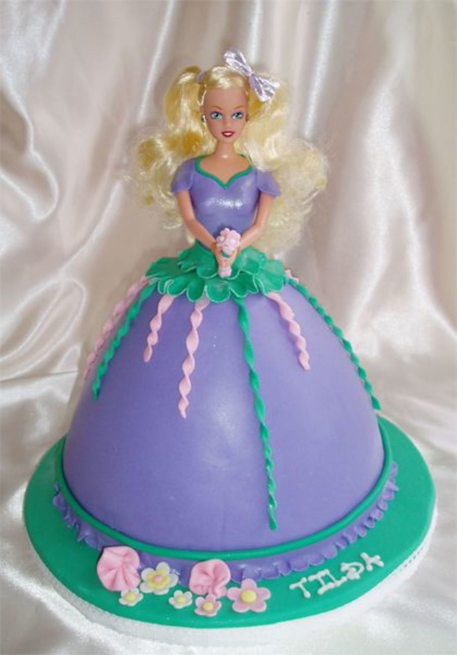 Another barbie cake. I had totally free hands on this one, so I decided to make it purple with green accents. All mmf, lustre dust on the top, bottom frill and the green around the waist.