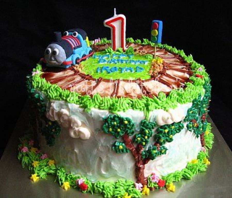 chocolate & vanilla spongecake, buttercream frosting, buttercream & gel work thomas topper made from sugarpaste