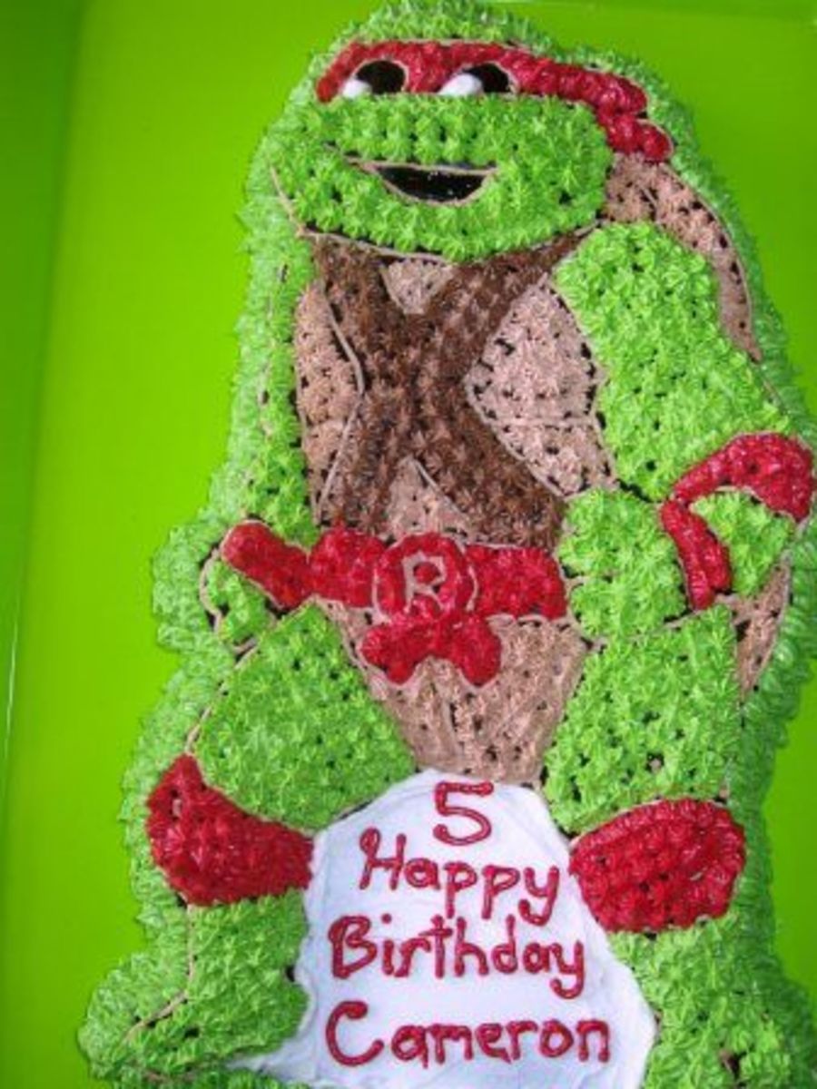 This is the michaelangelo cake tin I just changed the colours because raphael is the boy's favourite