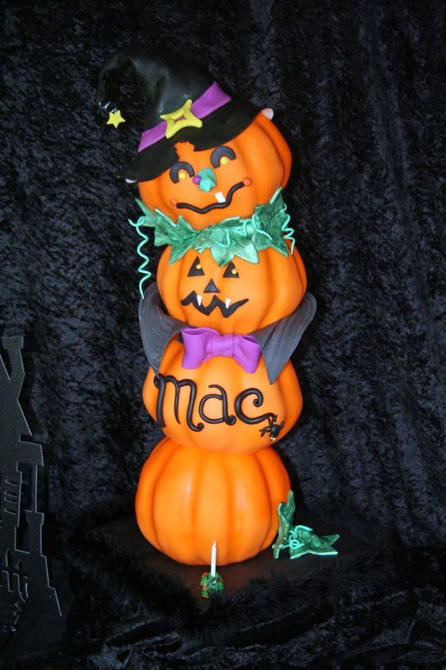 Four ball-pan carved pumpkins! They are for a special little girl's 4th Birthday ~ Inside is the rainbowlicious cake.