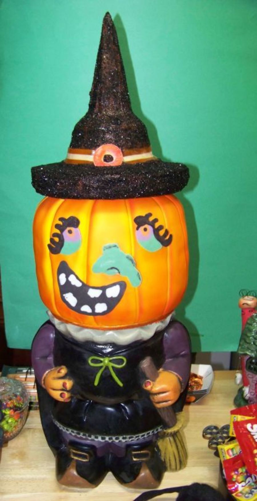 I had alot of fun w/ this cake! The hat is choc cake, pumpkin is pumpkin pound cake and the body is plastic (LOL). The stand is actually a pumpkin stand I bought at target. I used mmf for the pumpkin and the face is made with candy melt transfers.