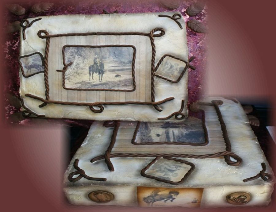 Mary's 'vintage' cowgirl cake (she turned 60) Edible images done with the help of 'ladyonzlake'. BC with all fondant accents then airbrushed to look old.