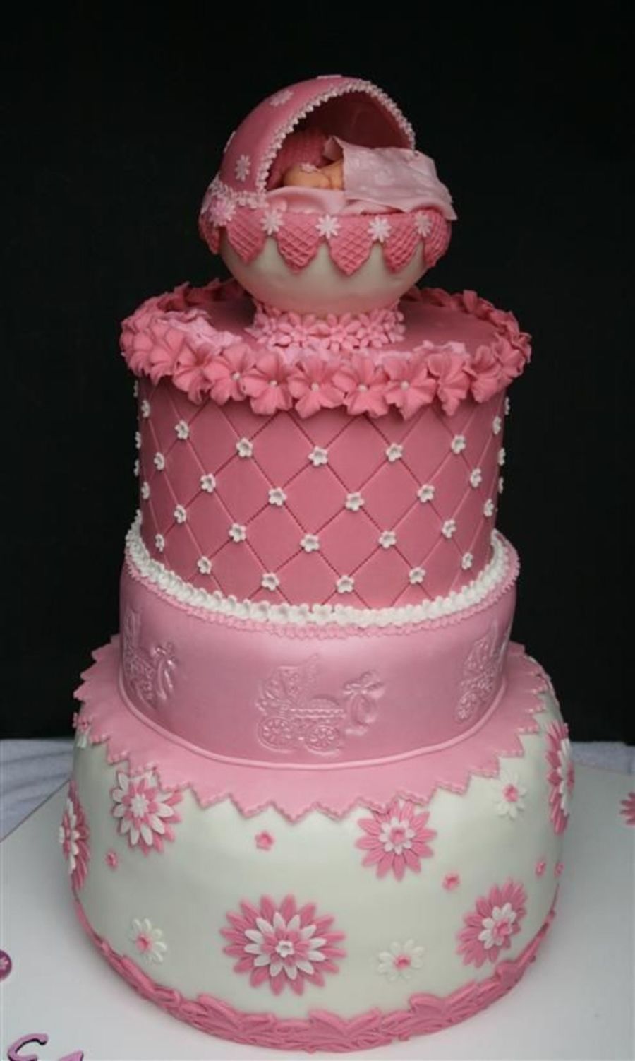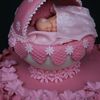 Baptism Cake. Milk Chocolate mudcake. Covered in Fondant. Baby crib: fondant & gumpaste.