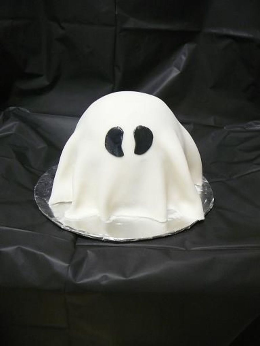 Halloween Birthday cake for a 5 year old. My take on another CC'er idea. - 2 layer 6" and half the sports ball covered in fondant icing.