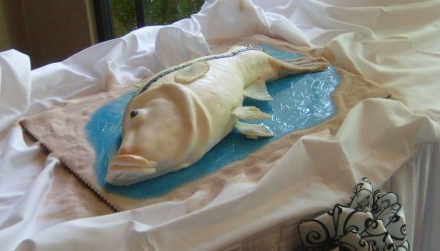 Snook cake for groom. Choc cake with fondant and 50/50 sugarpaste for the detail work.