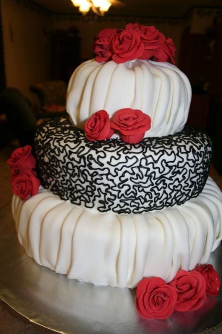 I made this for my grandparent's 60th Wedding Anniversary this past weekend. White cake with fondant pleats and my first gumpaste roses. They turned out ok i guess. Thanks for looking.