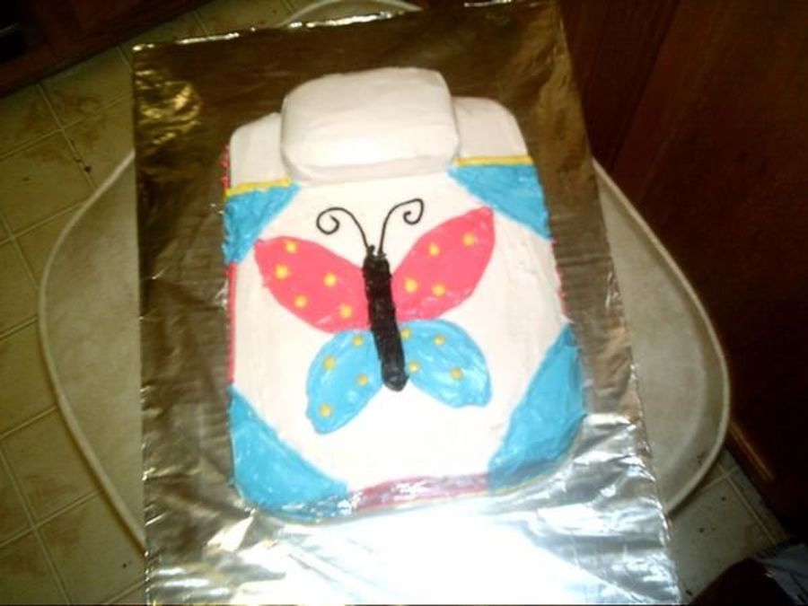 This is a chocolate cake with strawberry filling. My mil asked me to do it for her aunt. It turned out better than I thought it would. Her aunt loved it and I enjoyed doing it. Next time I will use butter cream vs. that stuff in the store that they claim is frosting. YUCK!!