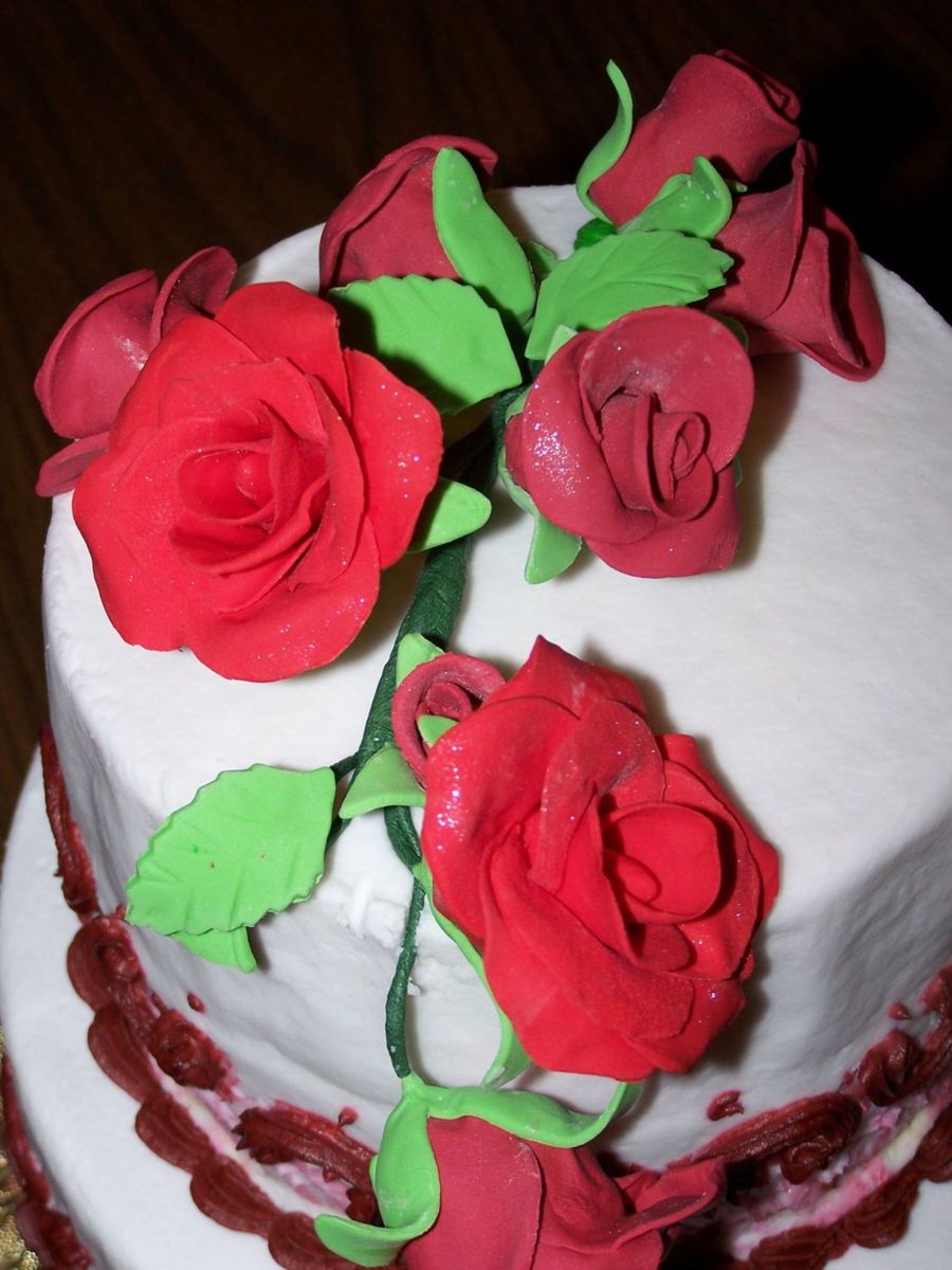 Closeup of Red Rose Topper for Anniversary cake
