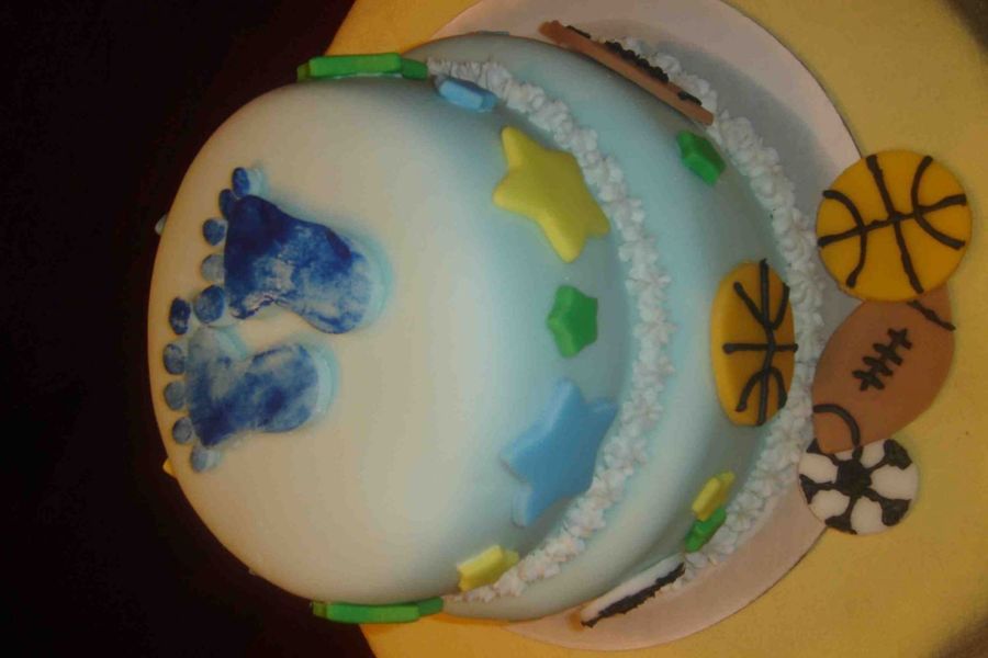 This was my second cake I have attempted. It was simple white cake with buttercream icing. I used fondant for the covering of the cake and the cut outs. Side note: soccer balls are not fun!